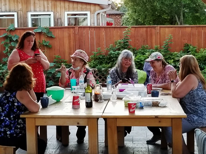 The club shared a generous and delicious meal including amongst other items: shrimp, potato salad, smokies, watermelon, a hearty casserole, and an impressively oversized cookie that quickly disappeared. It was a true feast!